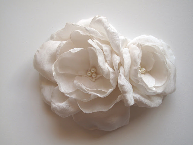 I found the most beautiful fabric the other day. I knew exactly what I would make with it the moment I saw it... the result is definitely my favourite flowers so far. These flowers are only available in ivory at the moment but can be made in different sizes or configurations. I currently have the white and black fabric on order but it could take a little while for them to arrive.