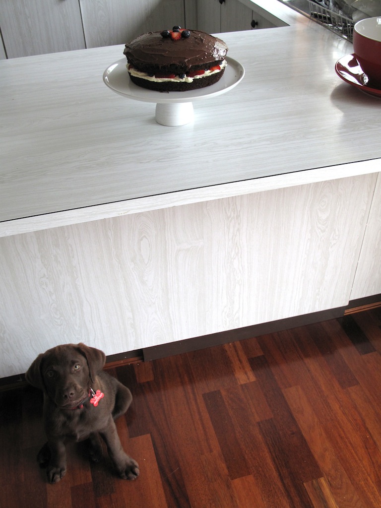 I mentioned in an earlier post that we were expecting a new addition to our family.... well, I can proudly report that Mr Rubenstein "Bear", our gorgeous (now) 11 week old chocolate Labrador has been settling in well in his new abode and seems to be quite happy with his new surroundings.