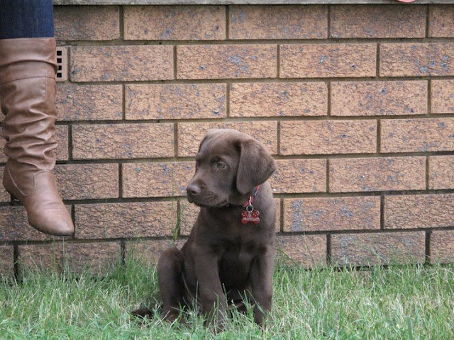 I mentioned in an earlier post that we were expecting a new addition to our family.... well, I can proudly report that Mr Rubenstein "Bear", our gorgeous (now) 11 week old chocolate Labrador has been settling in well in his new abode and seems to be quite happy with his new surroundings.