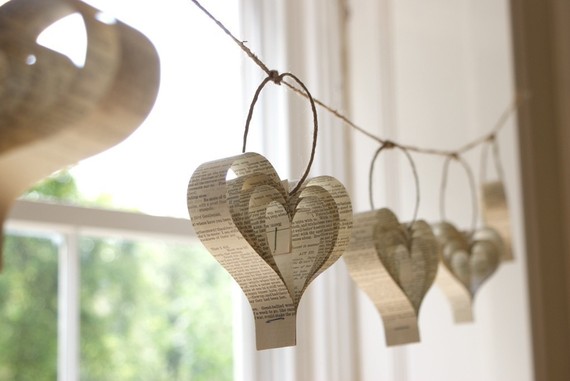 | Shakespearean paper garland of hearts by Bookity |
