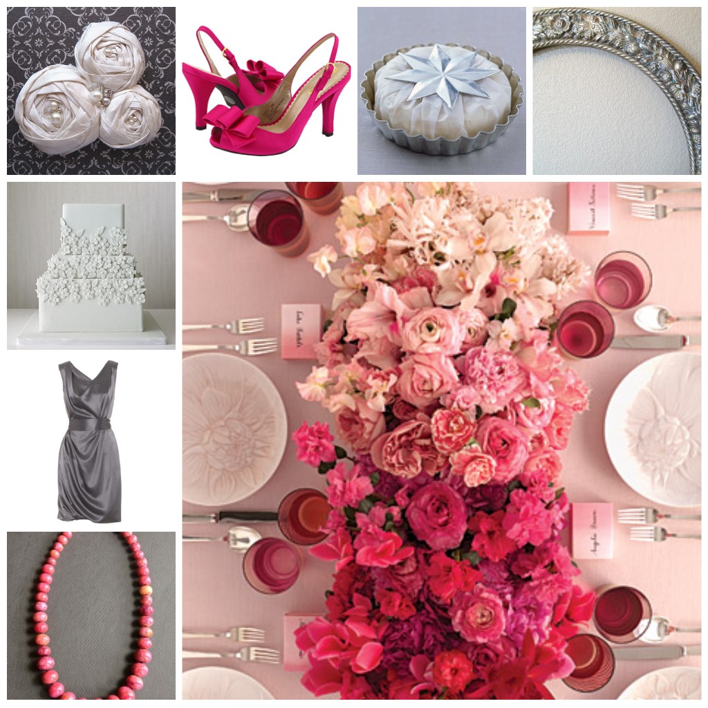 I previously created an inspiration board featuring Pantone's 2011 colour of the year honeysuckle pink. I absolutely love the intense hue of honeysuckle pink and I was inspired to create an inspiration board featuring this gorgeous hue combined with a gorgeous grey. There's something so special about pink and grey together - lovely!