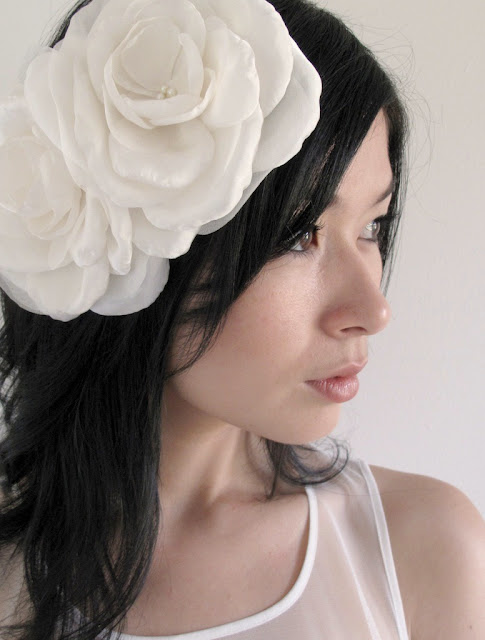 Some of the newest pieces just added to the shop feature oversized blooms in all their glory. I am LOVING these big gorgeous flowers! The largest size is 5.5" wide however I am committed to making some that are just a little bit bigger... up to 7" wide. I haven't had a free moment to make one that large yet but it's definitely on the to-do list.