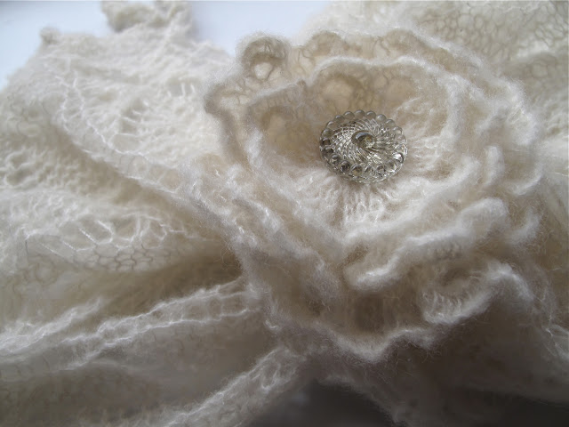 I received the sweetest gift the other day.... a knitted scarf and matching brooch pin from my partner's mother. Oh so sweet and oh so beautiful! I really wish I was half as talented as Steve's mum... maybe one day.